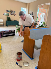 Adicionalmente; Este fantástico equipo pudo lijar, teñir y barnizar los bancos de las 30 iglesias y pintar el estacionamiento.